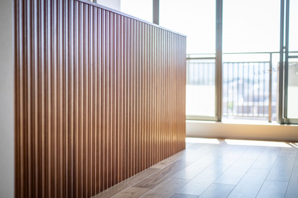 木のリブパネルを採用することで、空間に縦のリズムと陰影を生み出し、