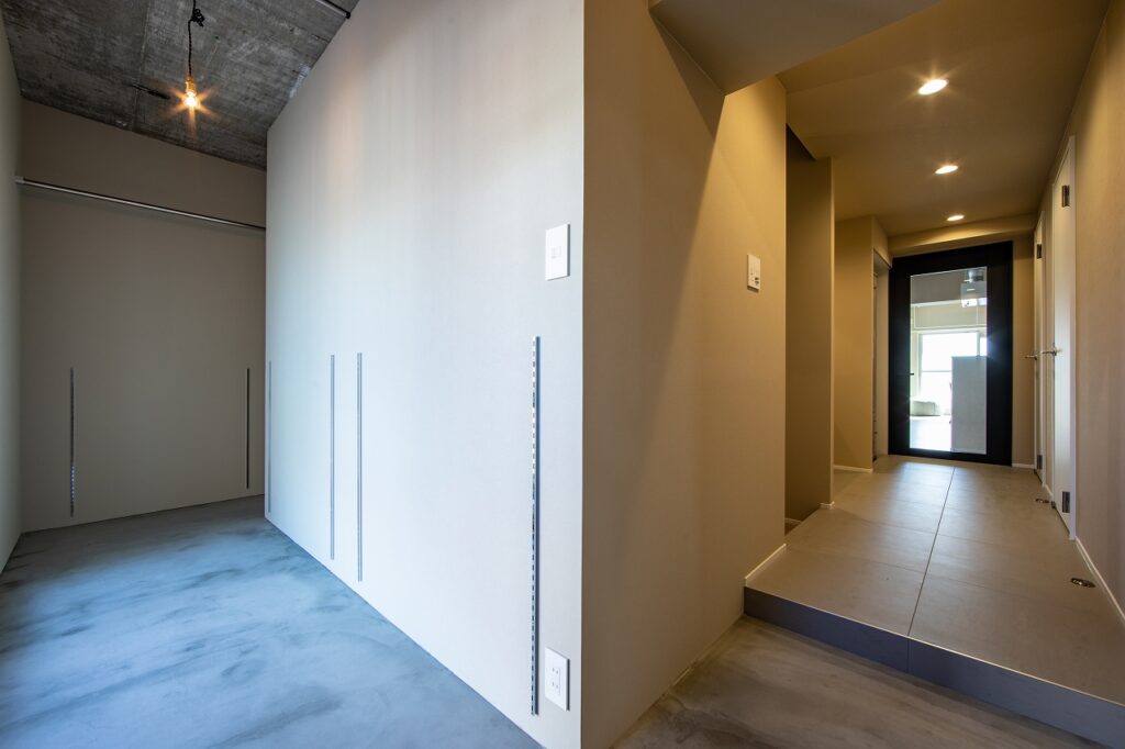 また、広くとった玄関土間はベビーカーやアウトドア用品の収納に加え、趣味のメンテナンススペースとしても機能。マンションでも“外と内の中間領域”を確保しました。