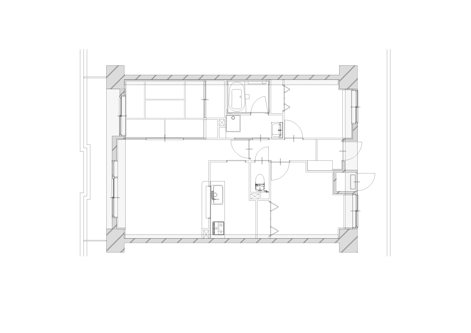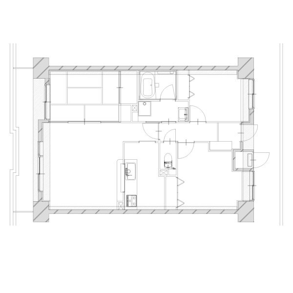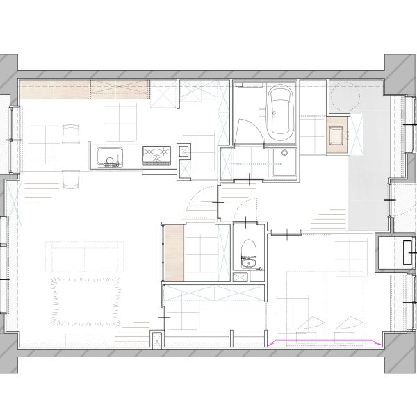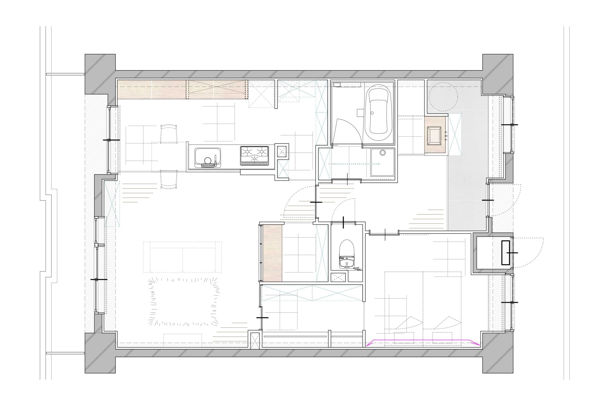 間取り:3LDK→1LDK+パントリー+WSC+土間+書斎