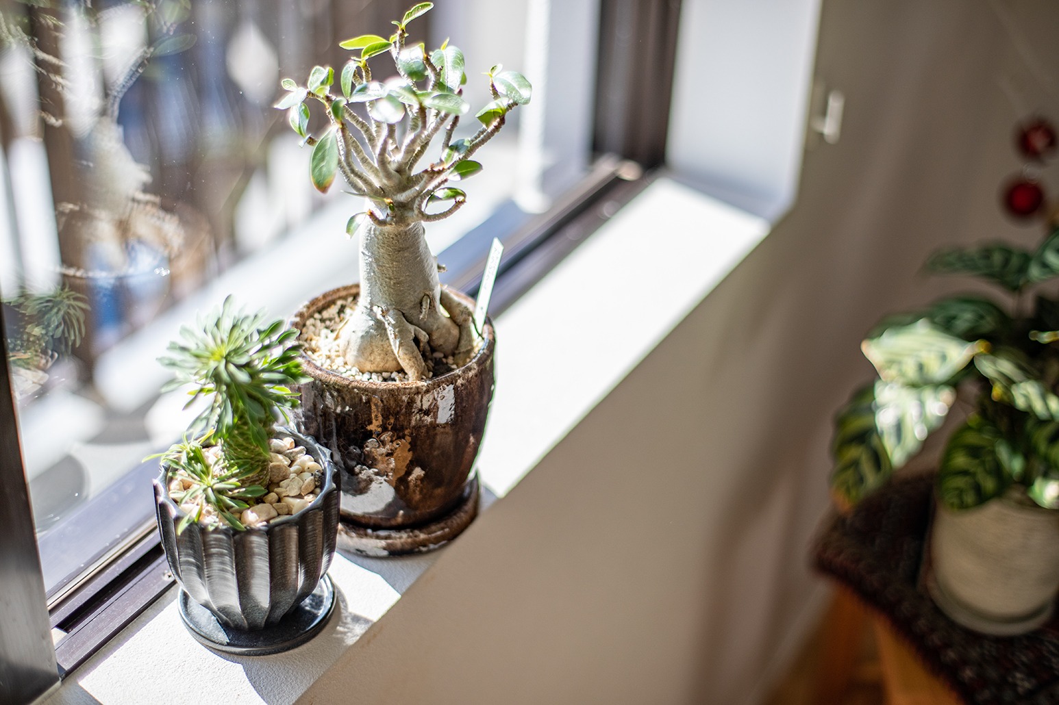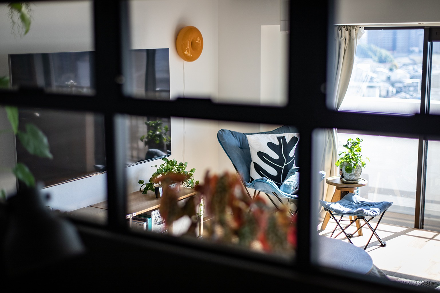 観葉植物がよく育つ明るいリビングは、おふたりのお気に入りの場所。